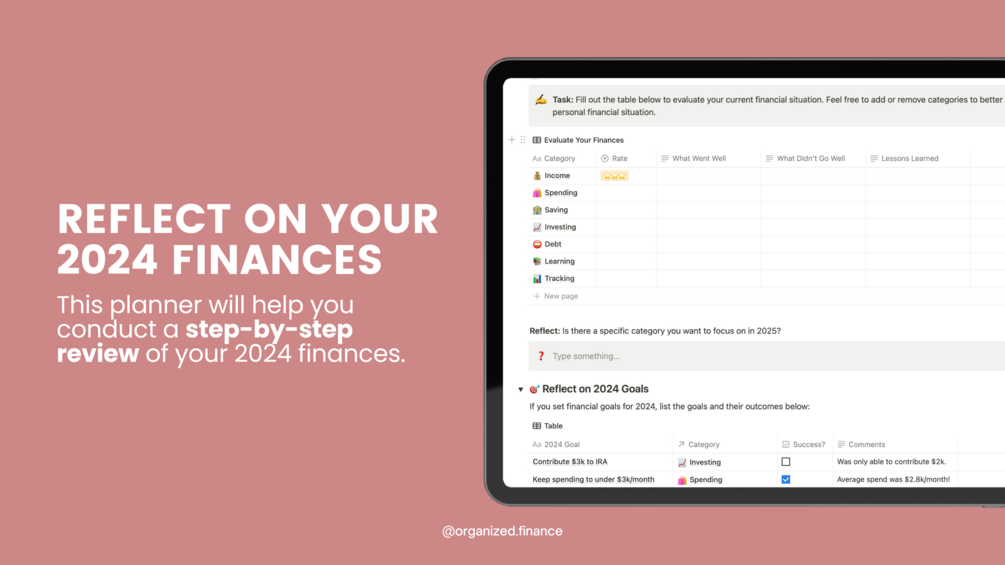 - 10+ sections designed to help you understand your 2024 finances and make a plan for 2025