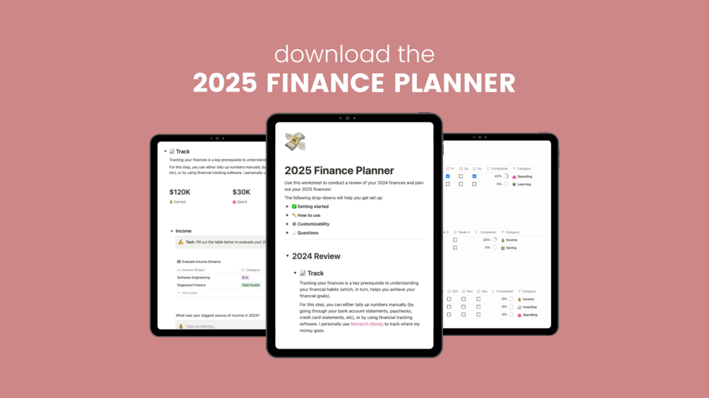 NOTE: This is the Notion version of the 2025 Finance Planner. If you're not comfortable with Notion, see the PDF version of the planner!