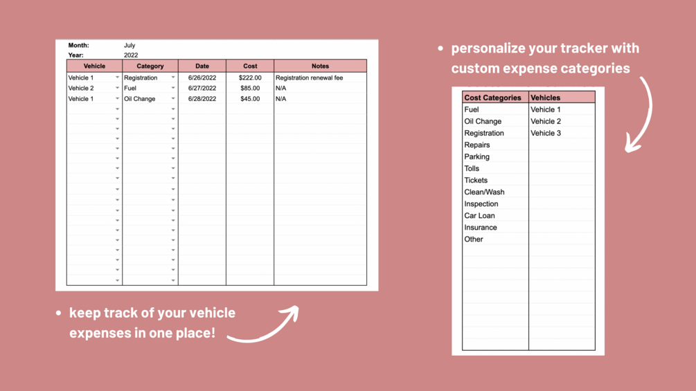 Download my Vehicle Costs Tracker template to keep track of the costs associated with your vehicles.